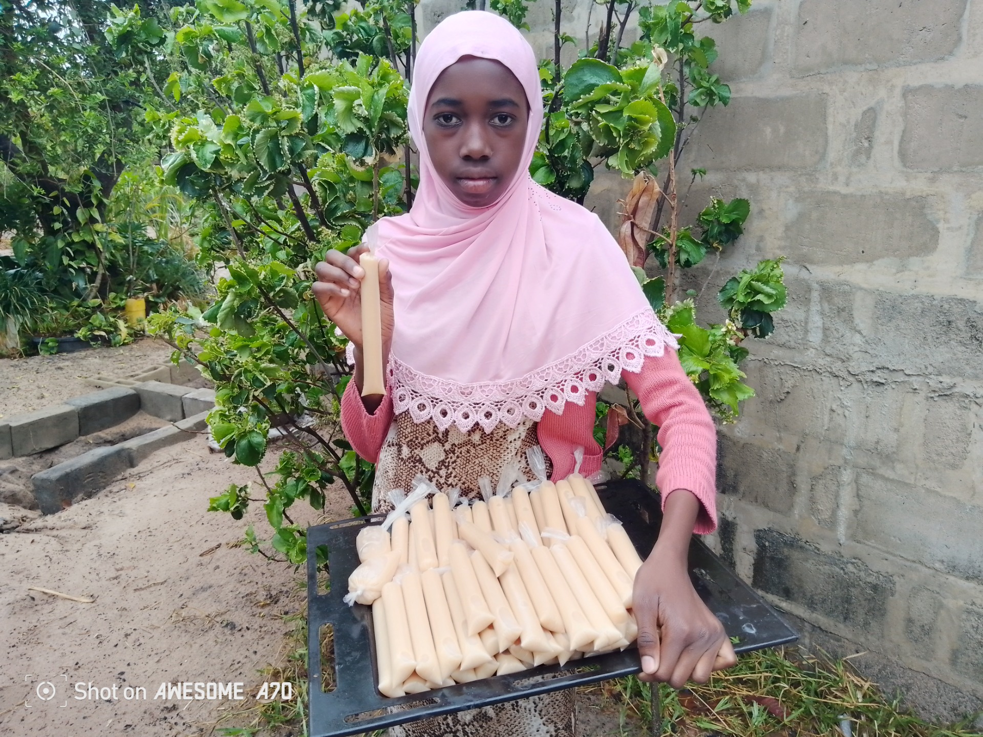 Here the Founder/CEO of Kembi Business Ventures Ms. Nuhiah Namakau Maboshe making baobab fruit drink into 100mls using our first secondhand blender and packaging our product driven by the passion to manufacture high quality food products.